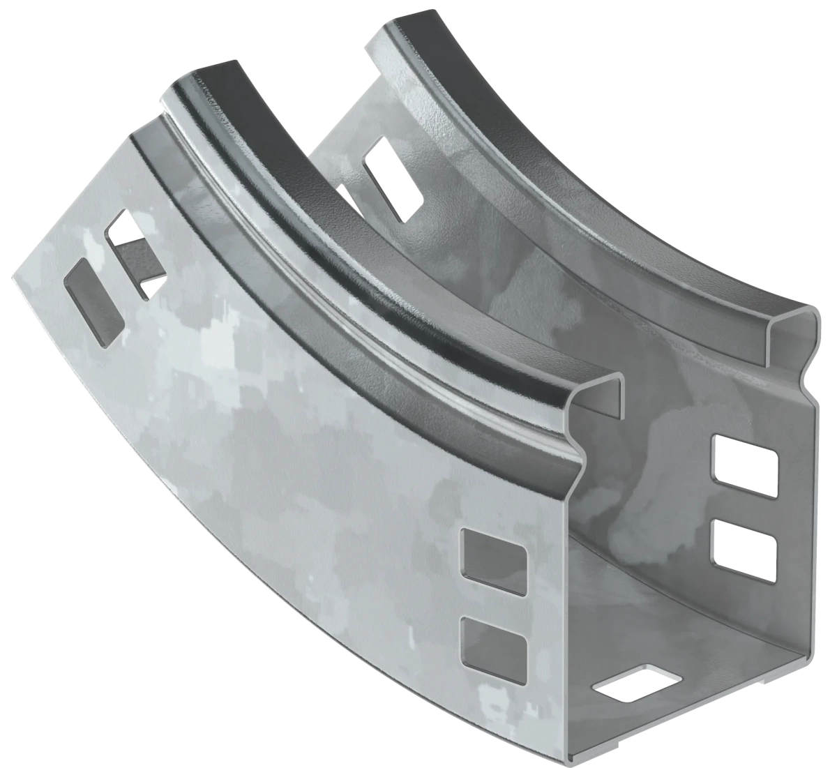 Описание Поворот на 45 градусов вертикальный внутренний плавный предназначен для организации вертикального внутреннего поворота кабельной трассы на 45 градусов. Крышка аксессуара в комплект не входит.Аксессуар изготовлен из стали с цинковым покрытием, нанесенным погружением изделий в расплав цинка (защитный слой цинка не менее 55 мкм).