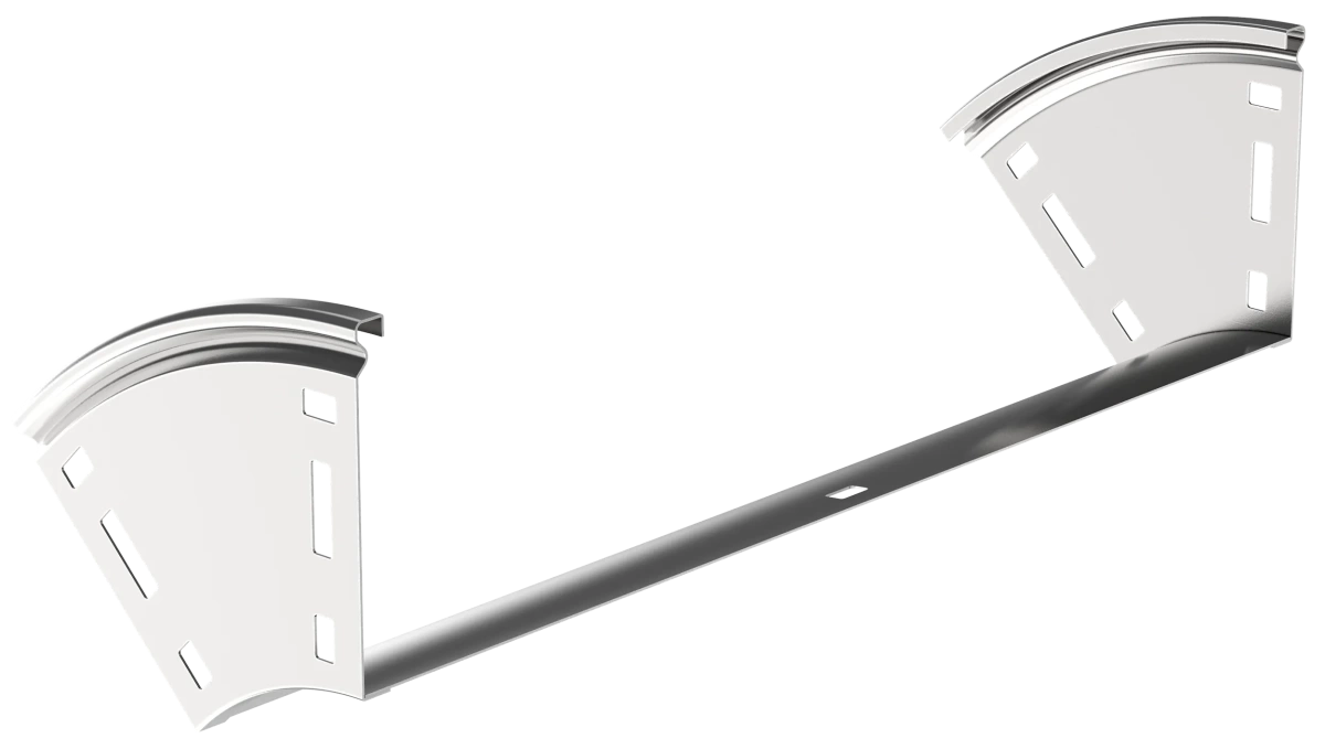 Описание Поворот на 45 градусов вертикальный внешний плавный предназначен для организации вертикального внешнего поворота кабельной трассы на 45 градусов. Крышка аксессуара в комплект не входит.Аксессуар изготовлен из стали горячего цинкования методом Сендзимира (защитный слой цинка не менее 10 мкм).