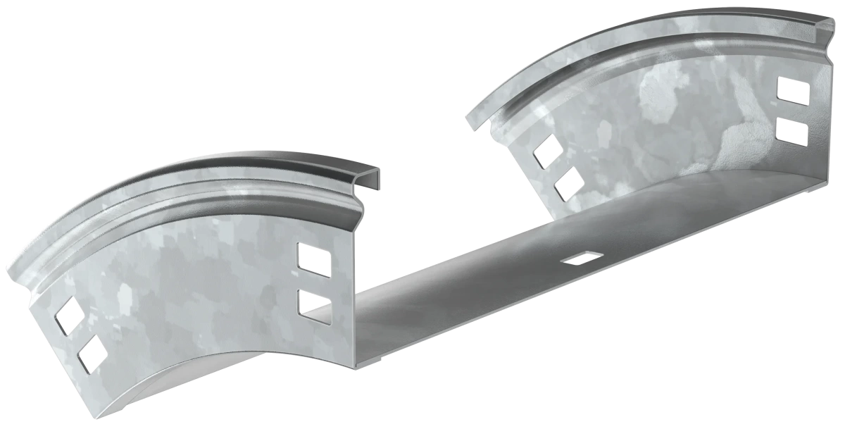 Описание Поворот на 45 градусов вертикальный внешний плавный предназначен для организации вертикального внешнего поворота кабельной трассы на 45 градусов. Крышка аксессуара в комплект не входит.Аксессуар изготовлен из стали с цинковым покрытием, нанесенным погружением изделий в расплав цинка (защитный слой цинка не менее 55 мкм).