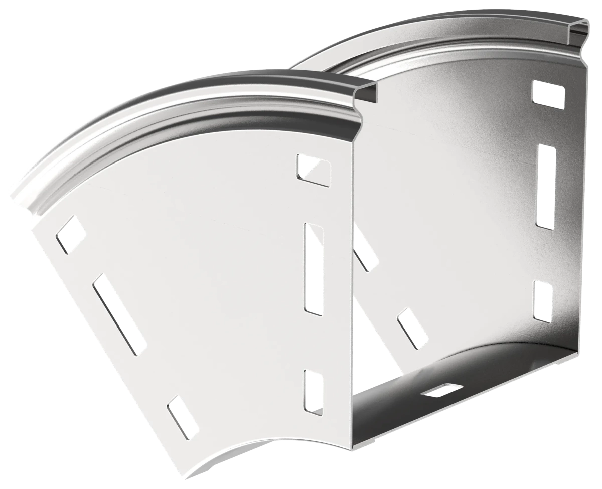Описание Поворот на 45 градусов вертикальный внешний плавный предназначен для организации вертикального внешнего поворота кабельной трассы на 45 градусов. Крышка аксессуара в комплект не входит.Аксессуар изготовлен из стали горячего цинкования методом Сендзимира (защитный слой цинка не менее 10 мкм).