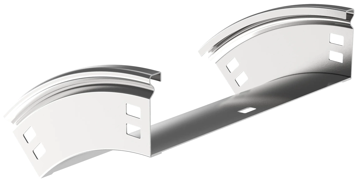 Описание Поворот на 45 градусов вертикальный внешний плавный предназначен для организации вертикального внешнего поворота кабельной трассы на 45 градусов. Крышка аксессуара в комплект не входит.Аксессуар изготовлен из стали горячего цинкования методом Сендзимира (защитный слой цинка не менее 10 мкм).