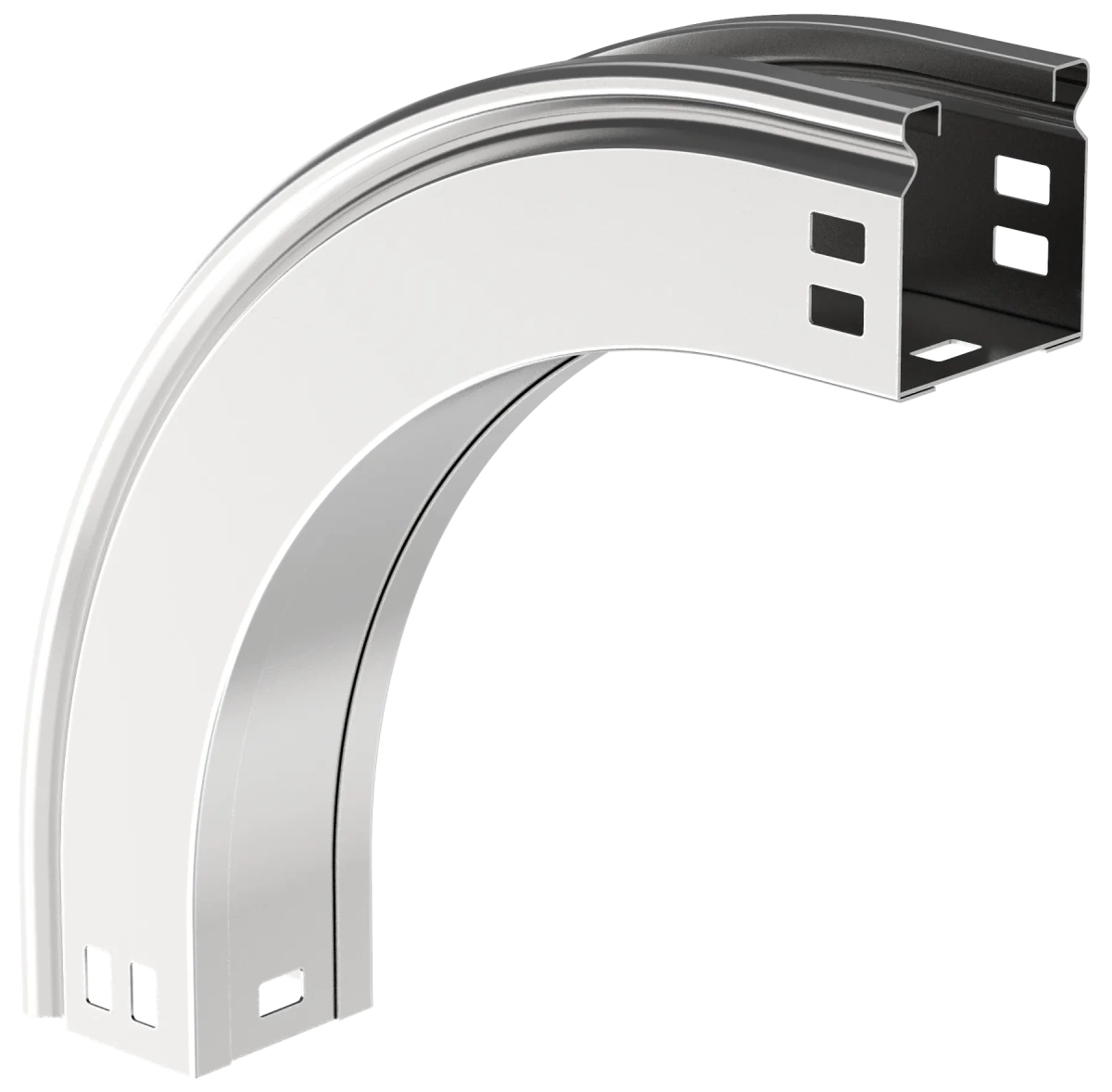 Описание Поворот на 90 градусов вертикальный внешний плавный предназначен для организации вертикального внешнего поворота кабельной трассы на 90 градусов. Крышка аксессуара в комплект не входит.Аксессуар изготовлен из стали горячего цинкования методом Сендзимира (защитный слой цинка не менее 10 мкм).