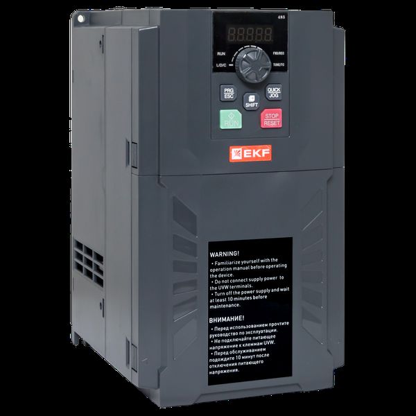 Описание Преобразователь частоты PRO-Drive 150 EKF (далее преобразователь) предназначен для управления скоростью вращения электродвигателей, применяемых в широком спектре промышленного оборудования. Преобразователь обеспечивает точное поддержание скорости вращения или момента на валу двигателя в зависимости от внешних факторов. Преобразователи соответствуют требованиям ГОСТ IEC 61800-5-1, ГОСТ IEC 61800-3.