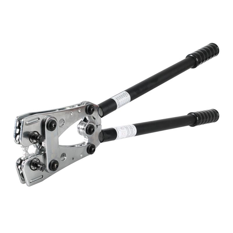 Описание Обеспечивают легкость в работе и высокое качество результата обжима медных наконечников сечением 10-120 мм? и алюминиевых наконечников сечением 16 до 120 мм?. Инструмент оснащен встроенными матрицами револьверного типа, которые осуществляют гексагональный обжим. Быстрая перенастройка обеспечивает легкость выбора необходимого размера. Пресс-клещи подходят для профессионального использования, они обладают повышенным рабочим ресурсом. Корпус инструмента изготовлен из качественной 5-миллиметровой стали.
