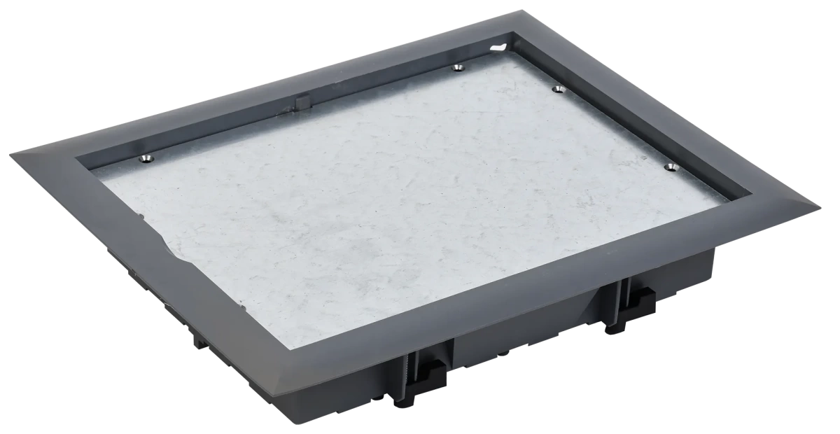 Описание Лючок напольный ONFLOOR закрытый (глухая крышка) предназначен для установки в напольную коробку ONFLOOR 24 и применяется в качестве глухой крышки для протяжки кабелей (не предназначен для установки ЭУИ).