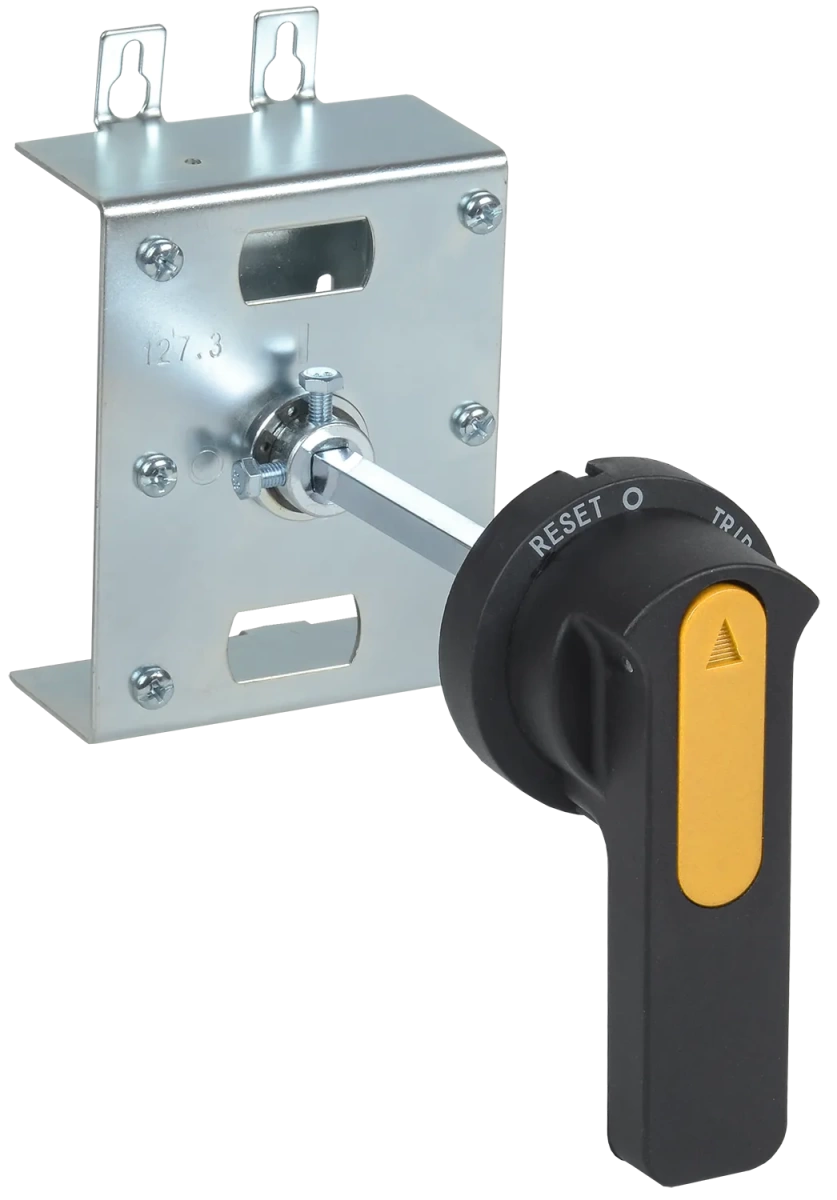 Описание Ручной поворотный привод ПРПм предназначен для преобразования вращательного движения в поступательное для управления автоматическим выключателем ВА88 MASTER. Привод закрепляется на двери распределительного устройства для оперирования выключателем через дверь или непосредственно на выключателе.