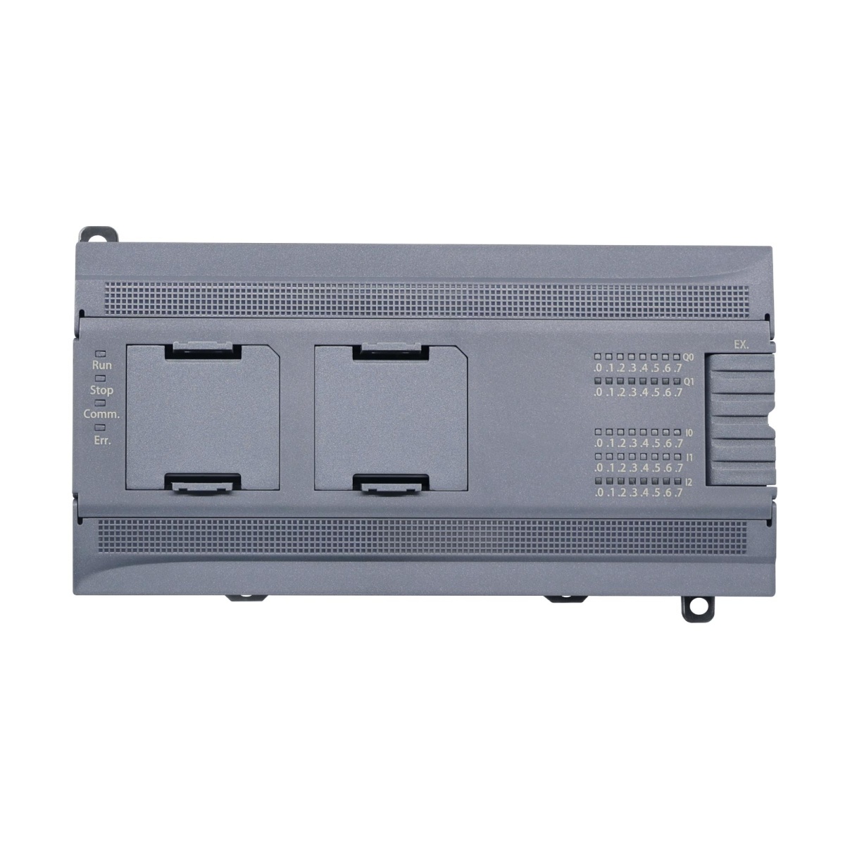 Наименование в каталоге Процессорный модуль программируемого логического контроллера, напряжение питания – 100-240В AC, 24 входных дискретных сигналов 24В DC(PNP/NPN), 16 выходных реле, коммуникационные порты – 2хRS485, 1хEthernet. Расширение - 2 модуля расширения моно