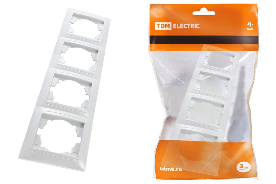 Полные технические характеристики Рамка четырехпостовая вертикальная белая Лама TDM ELECTRIC SQ1815-0035