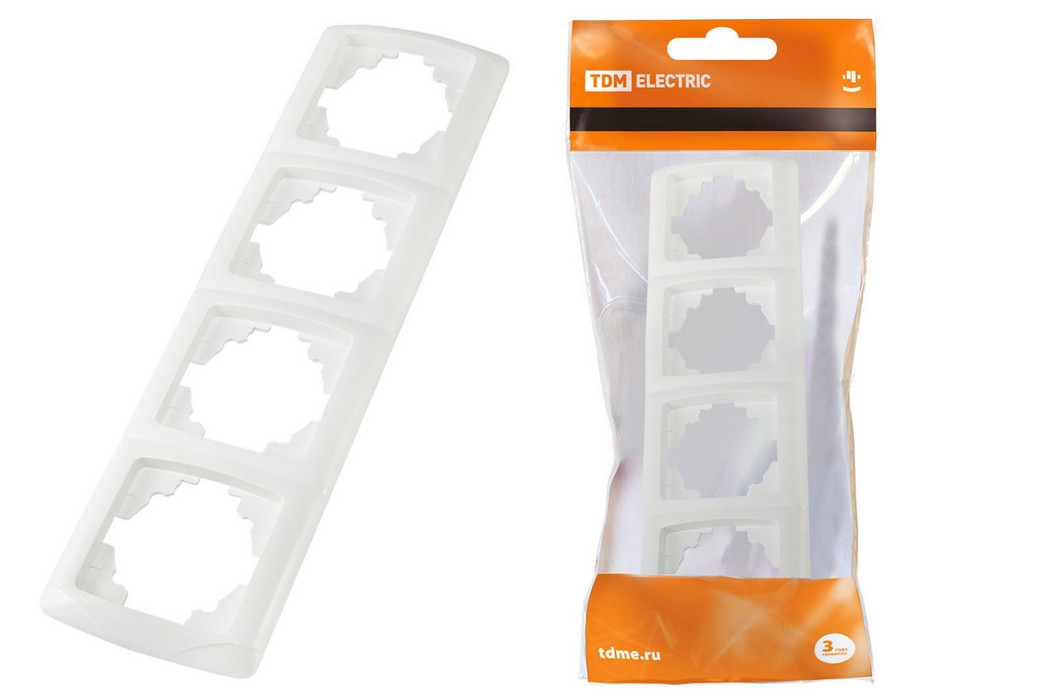 Рамка четырехпостовая вертикальная белая Онега TDM ELECTRIC SQ1805-0029