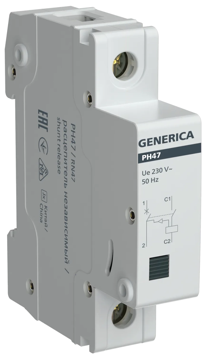 Наименование в каталоге Расцепитель независимый РН47 на DIN-рейку GENERICA