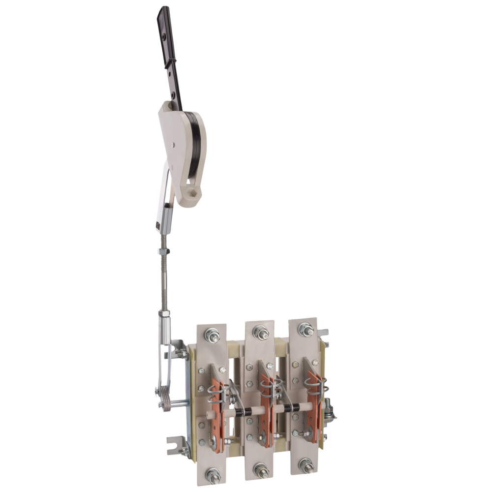 Описание Выключатель-разъединитель 3 полюсный на номинальный ток 1000 А, где установлена несъемная рукоятка, а механическая износостойкость составляет 6300 циклов.