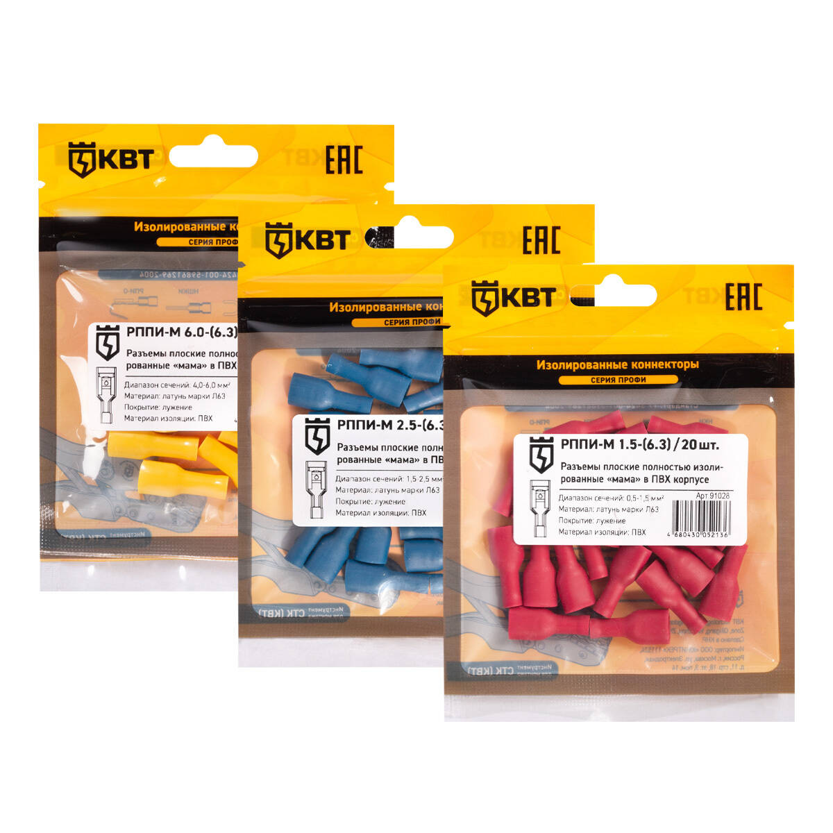 Полные технические характеристики Разъем кабельный плоский полностью изолированный «мама» РППИ-М 6.0-(6.3) (10 шт) КВТ