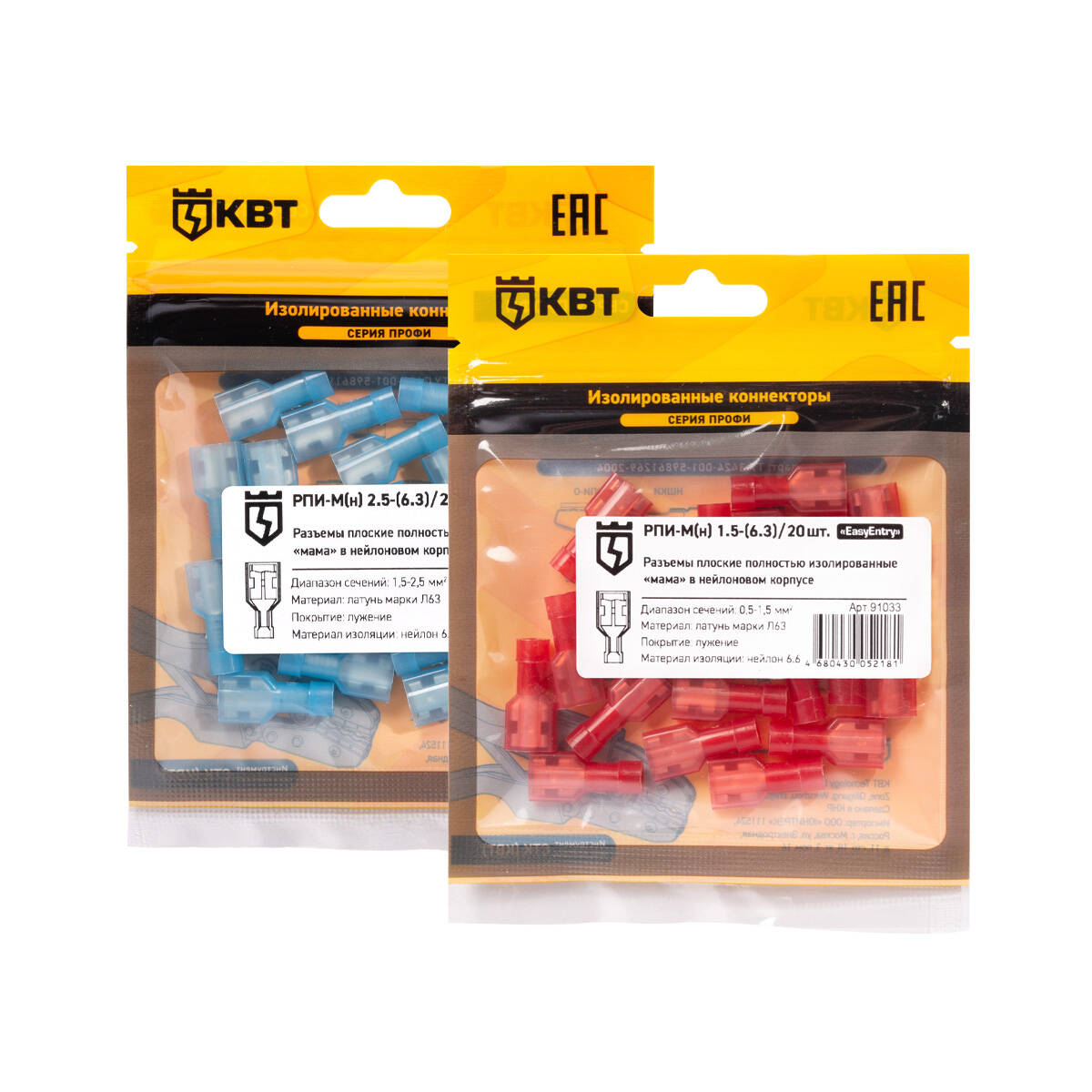 Разъем плоский полностью изолированный «мама» РПИ-М(н) 2.5-(6.3) (20 шт) (КВТ)