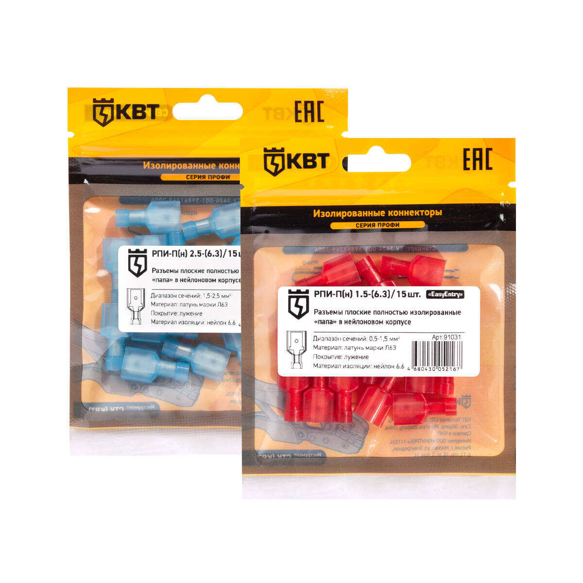 Наименование в каталоге Разъем плоский полностью изолированный «папа» РПИ-П(н) 2.5-(6.3) (15 шт)