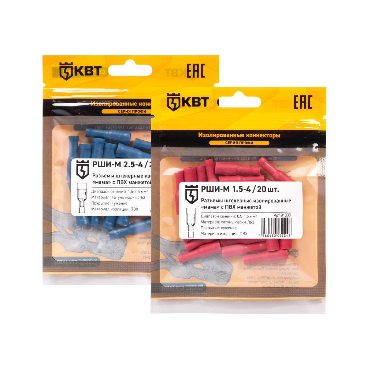 Полные технические характеристики Разъем штекерный изолированный «мама» РШИ-М 1.5-4 (20 шт) КВТ
