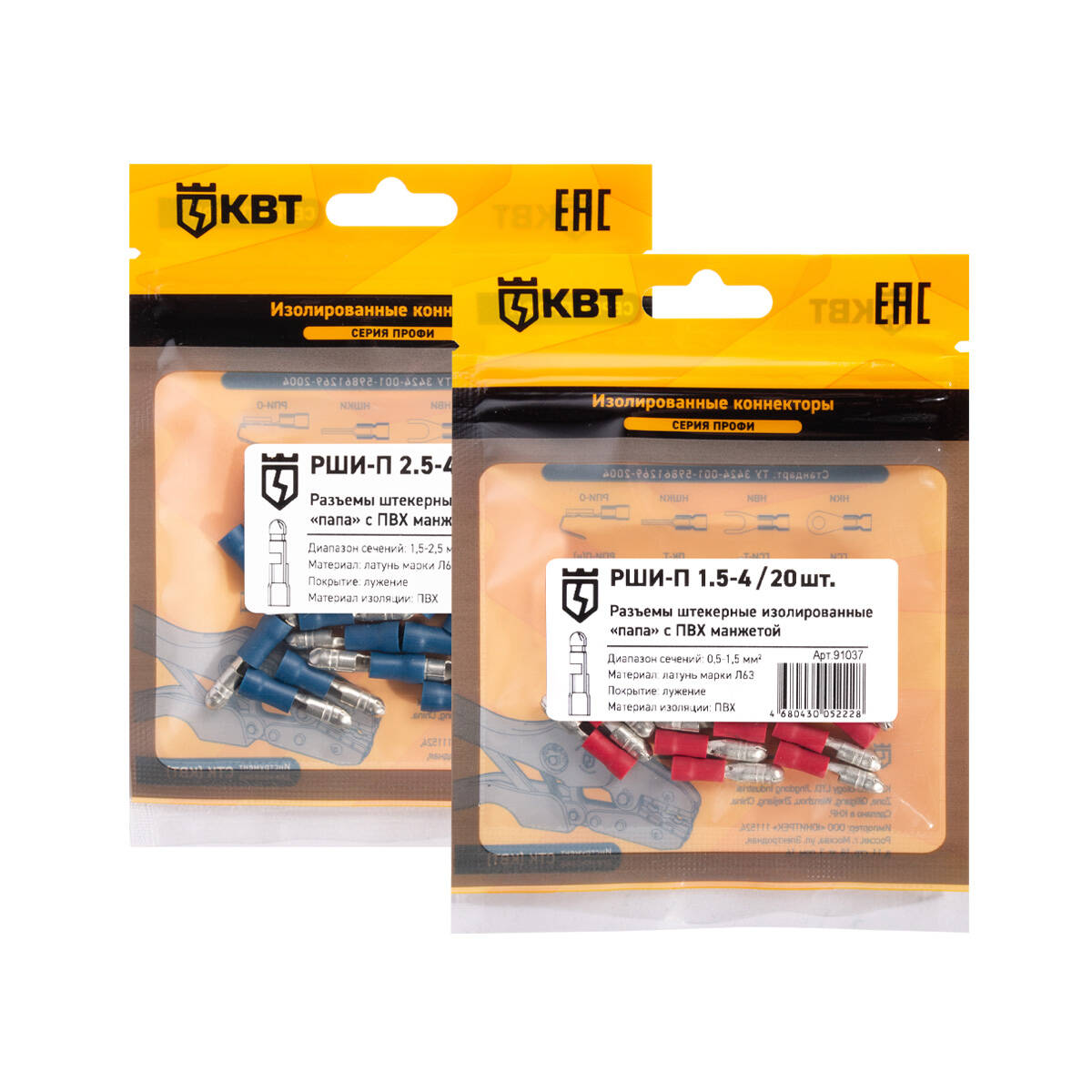 Полные технические характеристики Разъем штекерный изолированный «папа» РШИ-П 1.5-4 (20 шт) КВТ