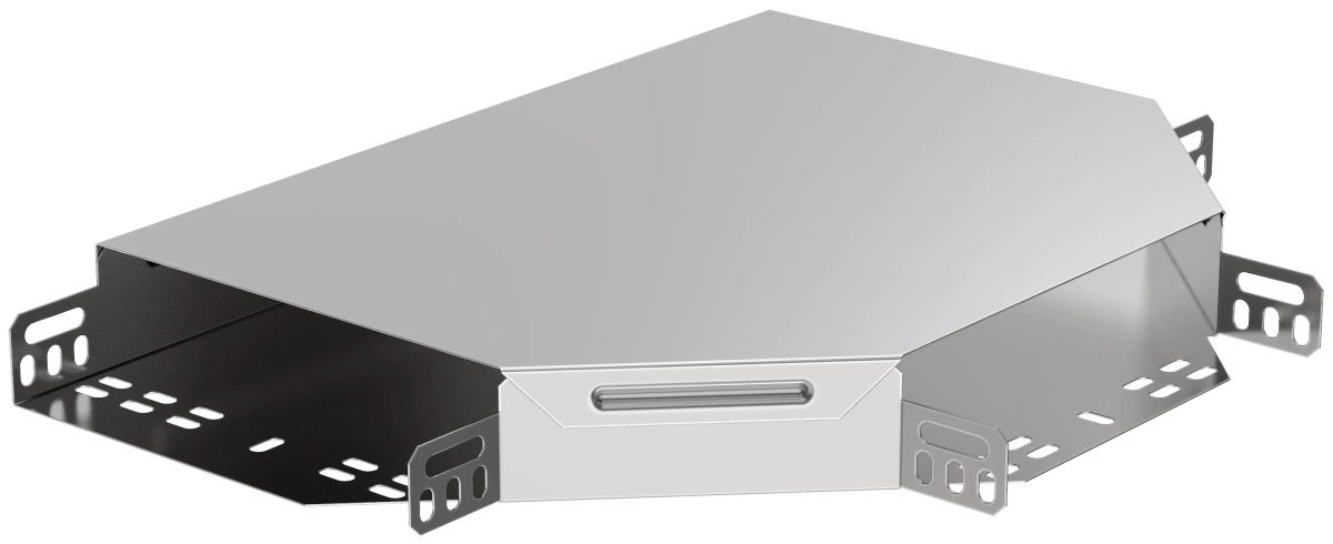 Описание Разветвитель Т-образный служит для организации Т-образного ответвления кабельной трассы. Данный аксессуар поставляется в комплекте с крышкой. Все аксессуары для металлических лотков изготовлены из стали горячего цинкования методом Сендзимира (защитный слой цинка 10-20 мкм).
