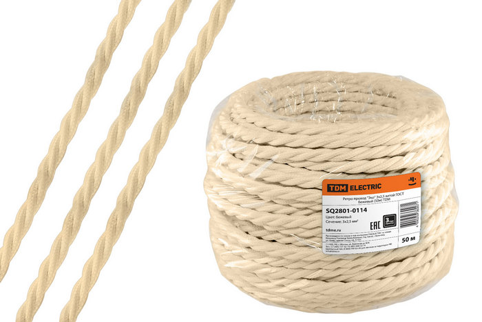 Ретро провод "Эко" 3х2,5 витой ГОСТ бежевый (50м) TDM TDM ELECTRIC SQ2801-0114