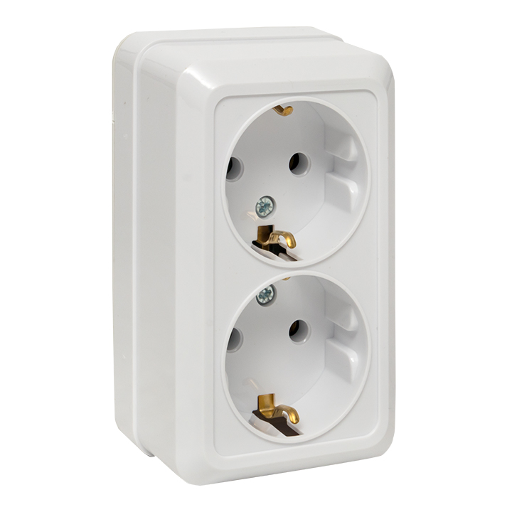 Рим Розетка 2-местная 16А с заземлением белая EKF