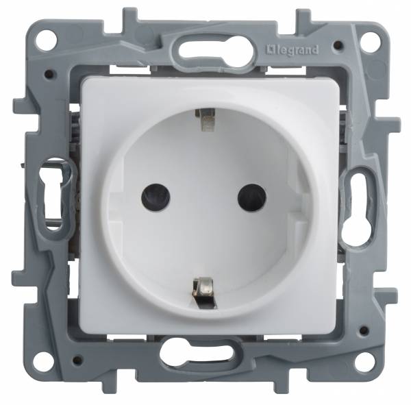 Наименование в каталоге ETIKA Розетка с заземлением белая