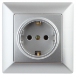 Наименование в каталоге Розетка Intro Solo 4-202-03 с заземлением 2P+E Schuko, 16А-250В, IP20, СУ, алюминий