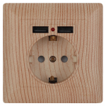 Наименование в каталоге Розетка Intro Solo 4-410-11 с заземлением P+E Schuko со шторками, 16А-250В + 2хUSB, IP20, СУ, сосна