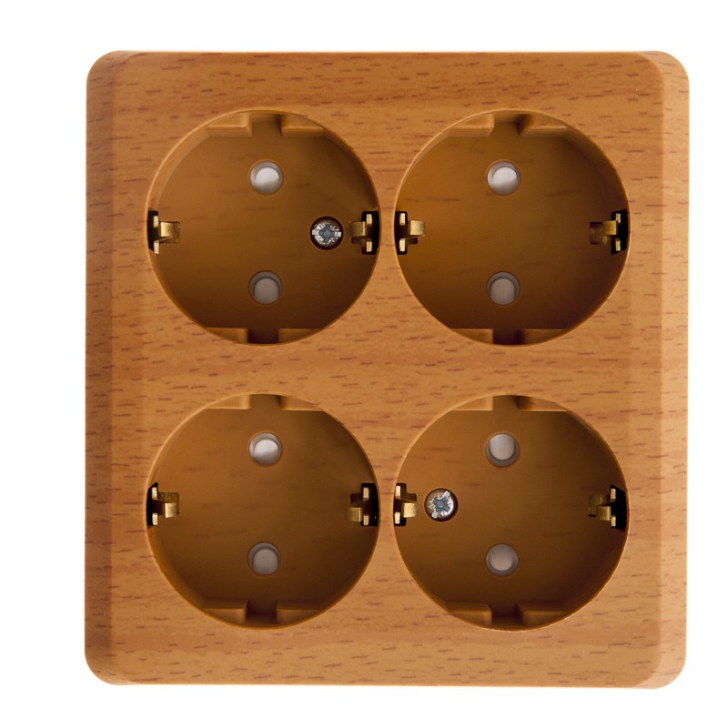 Описание Розетка Systeme Electric (ранее Schneider Electric) ЭТЮД (бук, открытой установки) четырёхместная с заземлением и шторками предназначена для применения в сетях до 250В, на ток до 16А. Четырёхместная розетка позволяет подключить четыре устройства в одном месте. Шторки и заземление обеспечивают дополнительную безопасность при косвенных прикосновениях. Изделия цвета Бук обладают уникальным рисунком, напоминающим древесный сруб. Сделано в России.