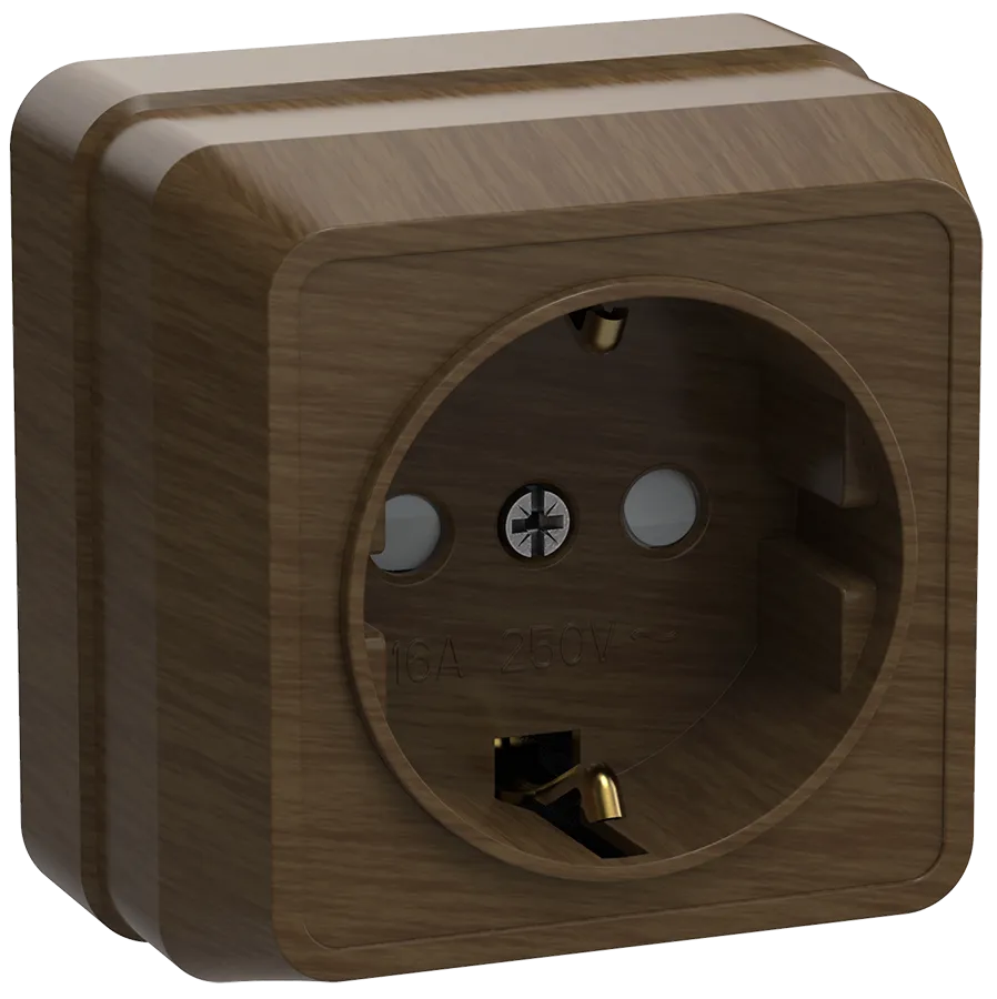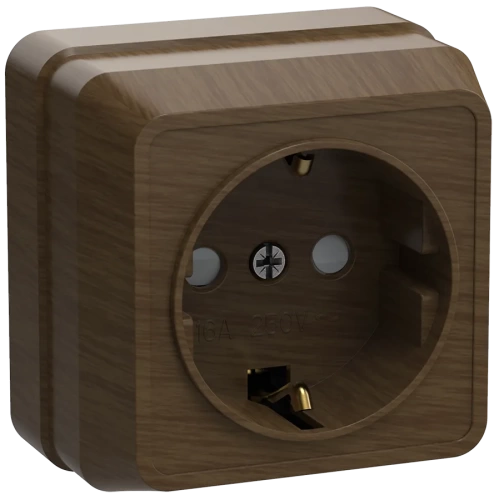 Розетка РСш20-3-ОД одноместная с заземляющим контактом с защитными шторками 16А открытая установка Октава дуб IEK (ИЭК) ERO14-K04-16-DC
