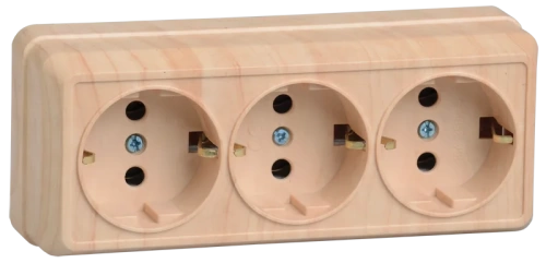 Наименование в каталоге ОКТАВА Розетка тройная наружная с заземлением сосна без крышки 16А