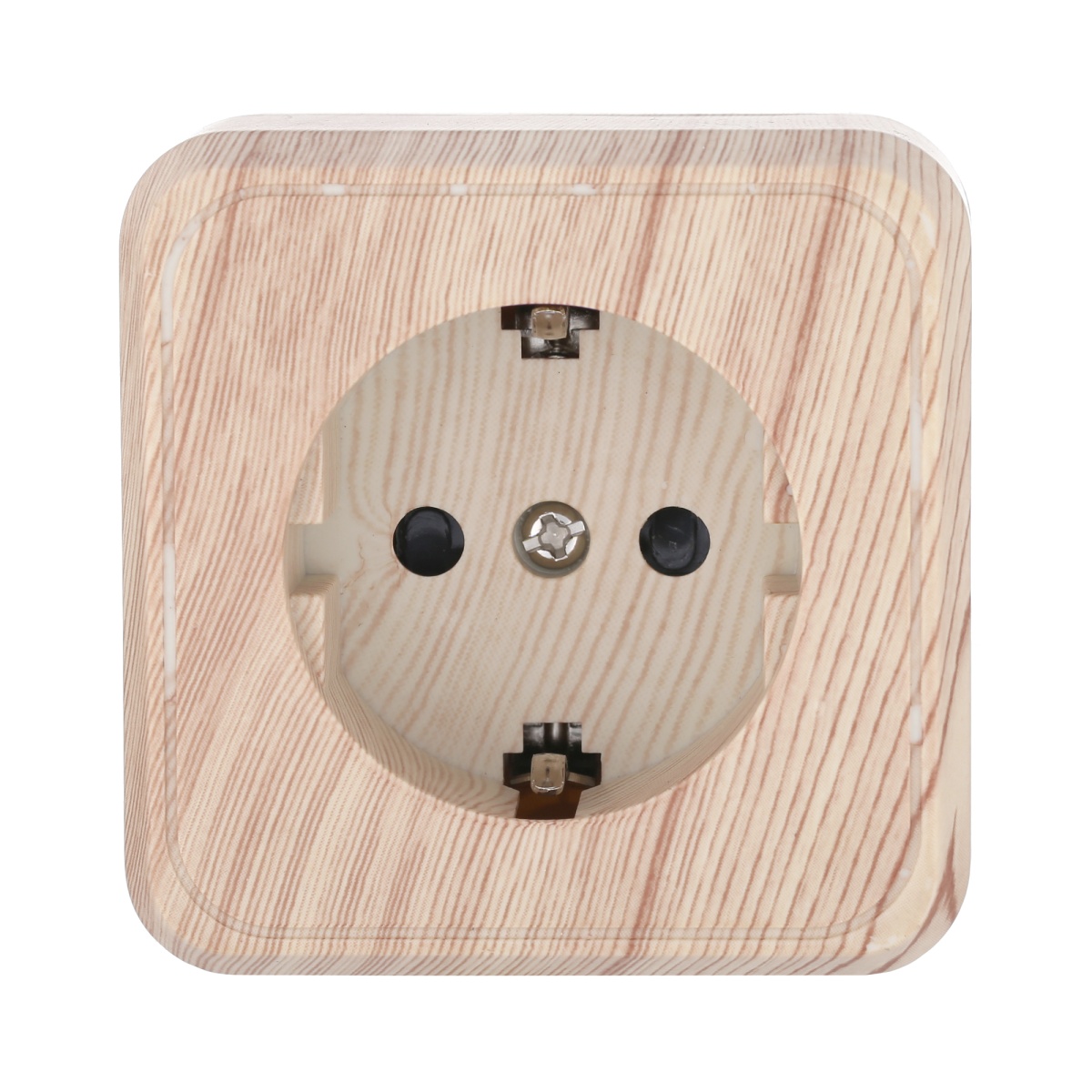 Розетка открытой установки с заземляющими контактами и защитными шторками (сосна), Standard Ecoplast 813225