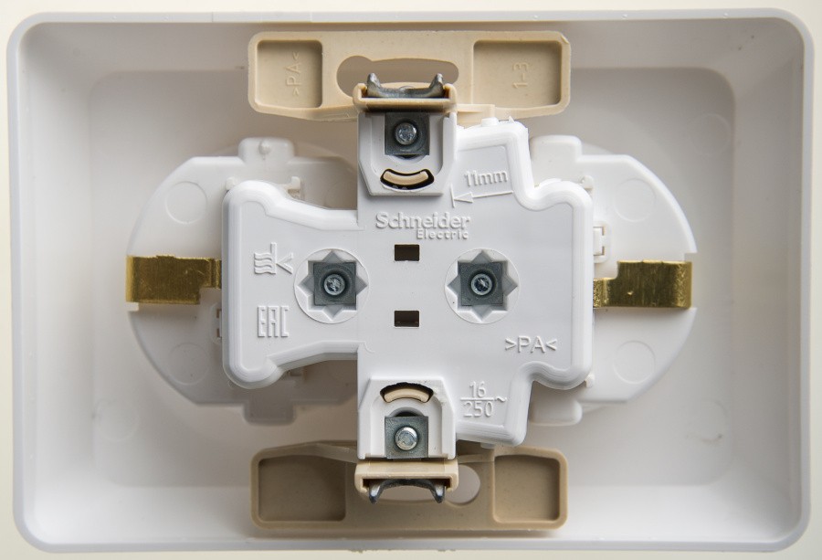 Описание Розетка Systeme Electric (ранее Schneider Electric) ЭТЮД (белый, скрытой установки) двухместная, с заземлением и шторками предназначена для применения в сетях до 250В, на ток до 16А. Двухместная розетка позволяет подключить два устройства в одном месте. Габаритные размеры основания 113*76,5 мм. Шторки и заземление обеспечивают дополнительную безопасность при косвенных прикосновениях. Сделано в России.