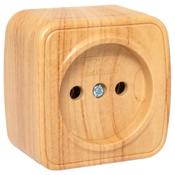 Наименование в каталоге Розетка 1-местная ОП Минск 10А без заземления светлое дерево