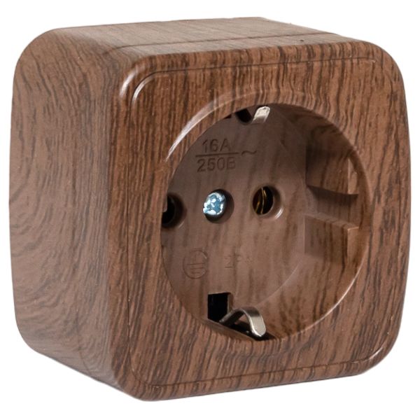 Наименование в каталоге Розетка 1-местная ОП Минск 16А с заземлением темное дерево