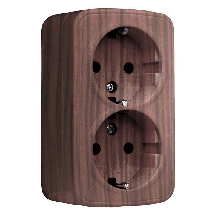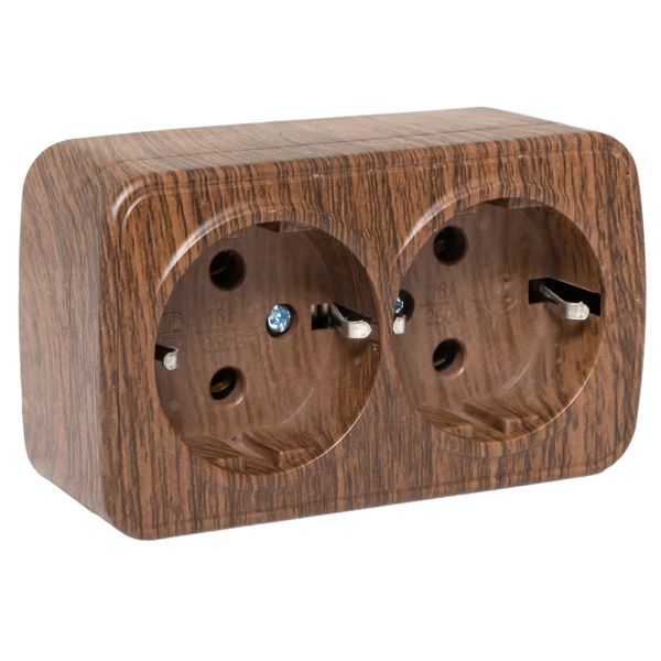 Наименование в каталоге Розетка двухместная ОП Минск 16А с заземлением темное дерево