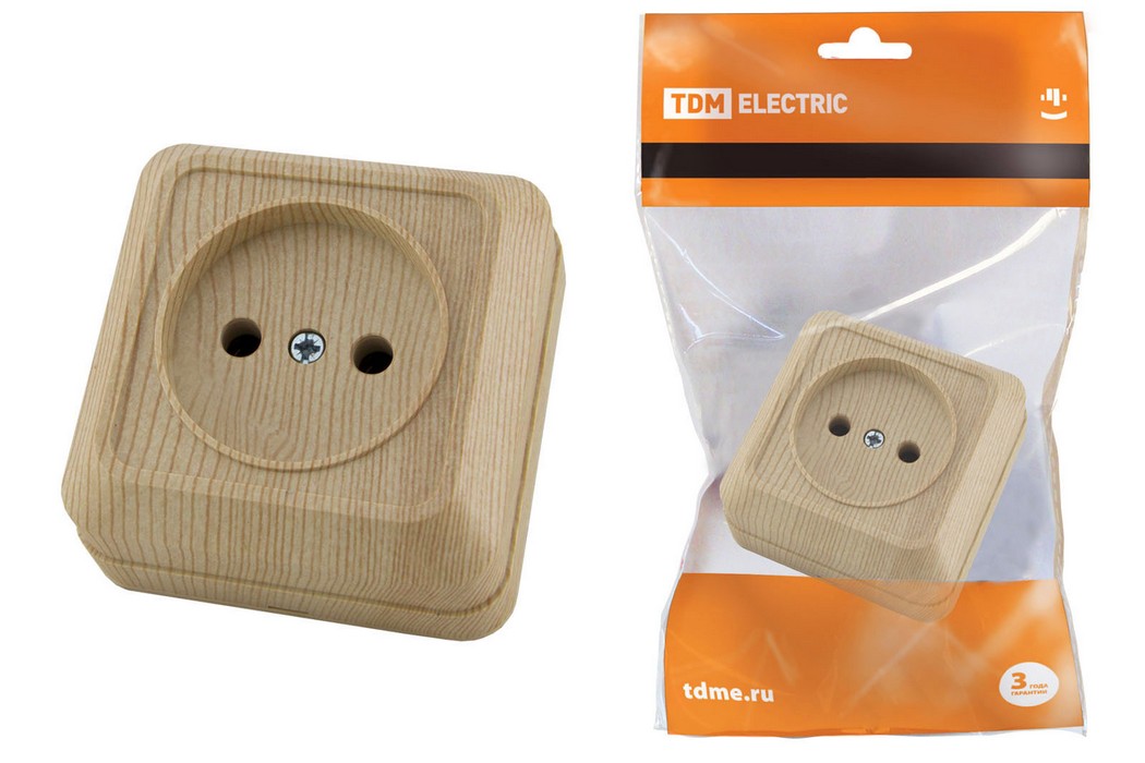 Розетка 2П открытой установки IP20 10А, соснаЛадога TDM ELECTRIC SQ1801-0049