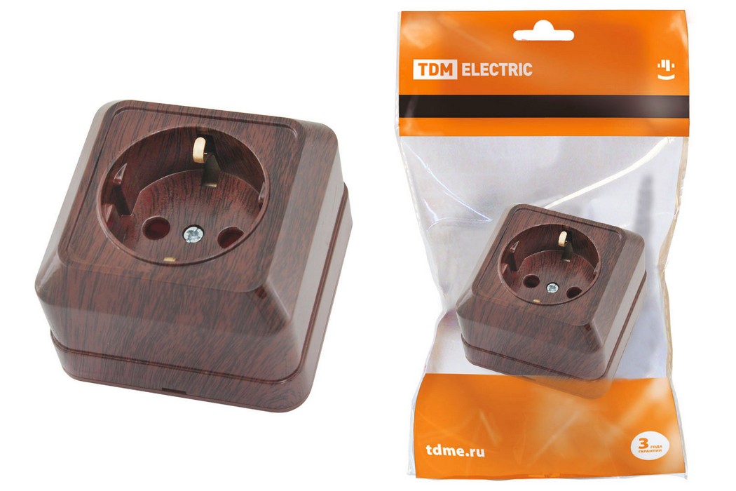 Полные технические характеристики Розетка 2П+З открытой установки IP20 16А, бук Ладога TDM ELECTRIC SQ1801-0034