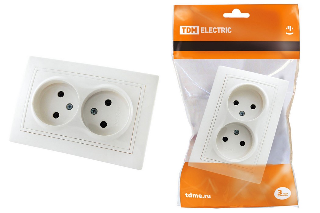 Розетка двойная 2П 10А 250В белая "Таймыр" TDM