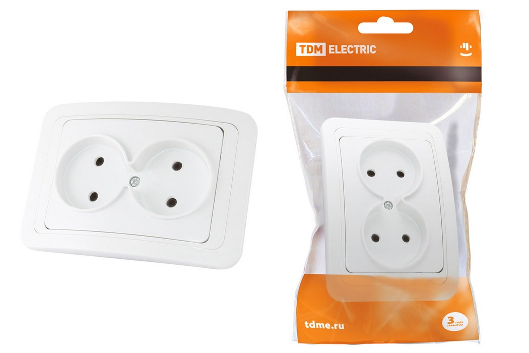 Розетка двойная 2П 10А белая "Валдай" TDM
