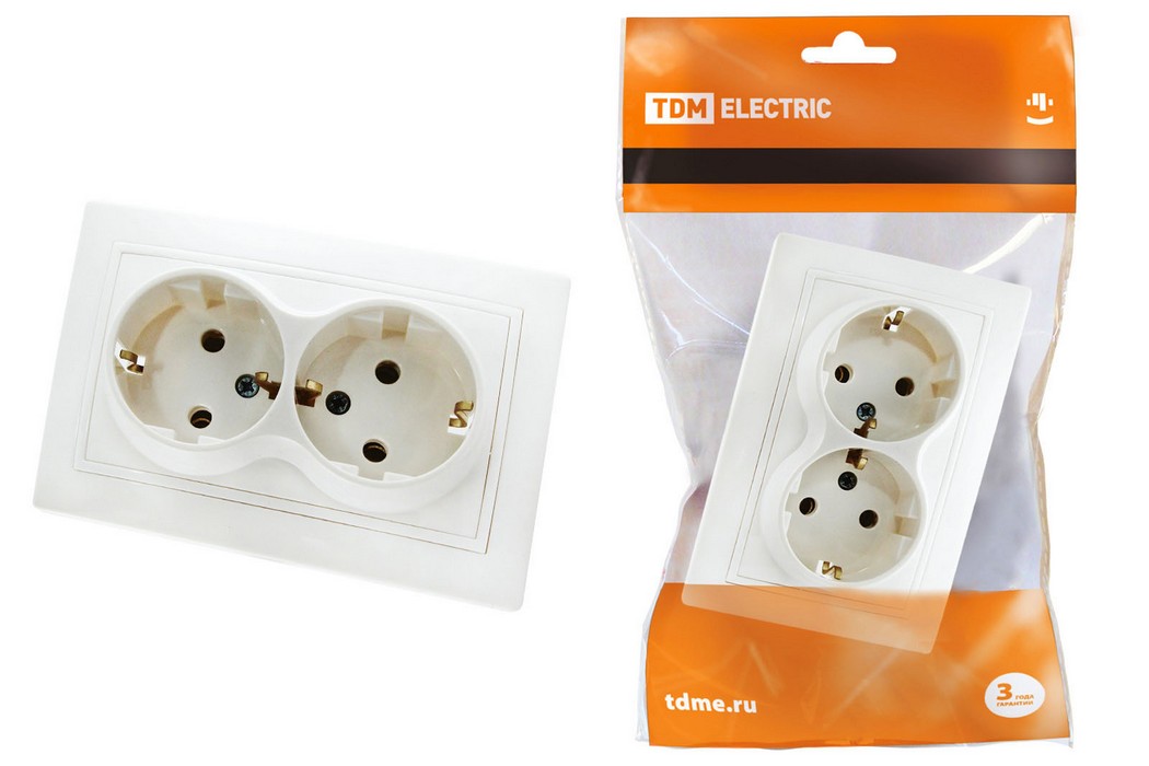 Розетка двойная 2П+З 16А 250В белая "Таймыр" TDM