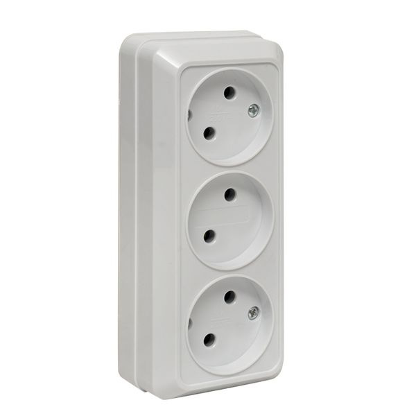 Наименование в каталоге Розетка Рим 3-местная 10А без заземления белая
