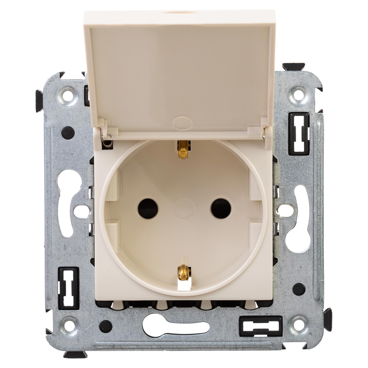 Розетка с крышкой в стену, 2P+E, "Avanti", "Ванильная дымка"
