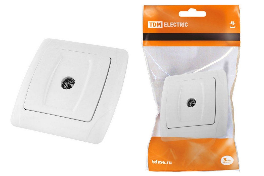 Розетка телевизионная простая (0-2400МГц, мама) белая Онега TDM ELECTRIC SQ1805-0023