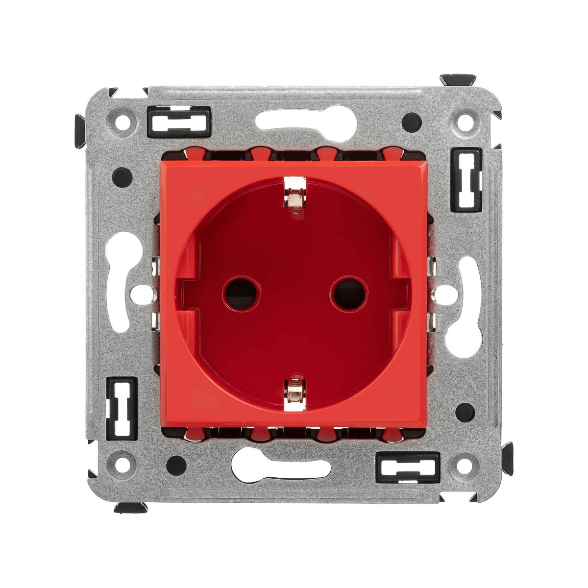 Наименование в каталоге Avanti Розетка в стену, 2P+E, с защитными шторками, Красный квадрат