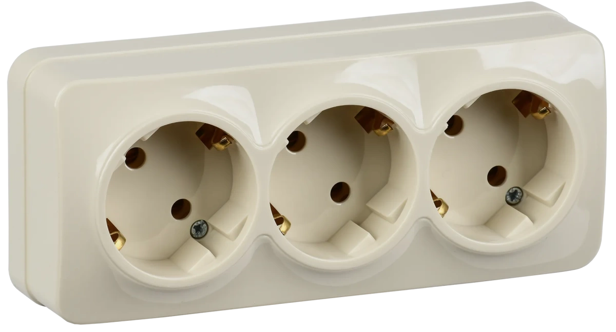 Наименование в каталоге GLORY Розетка трехместная наружная с заземлением кремовая