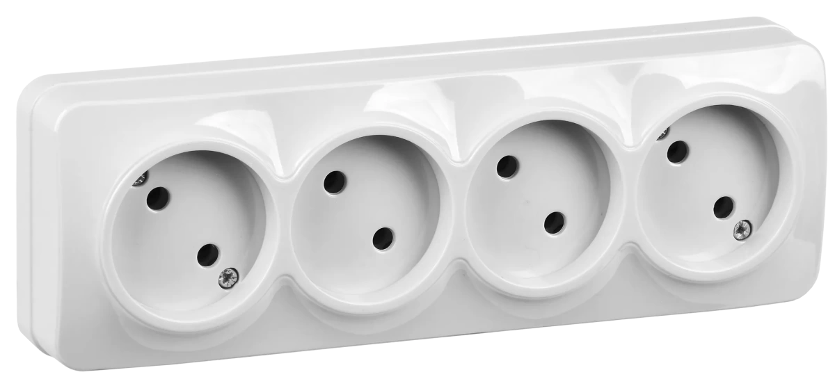 Наименование в каталоге GLORY Розетка четырехместная наружная без заземления белая