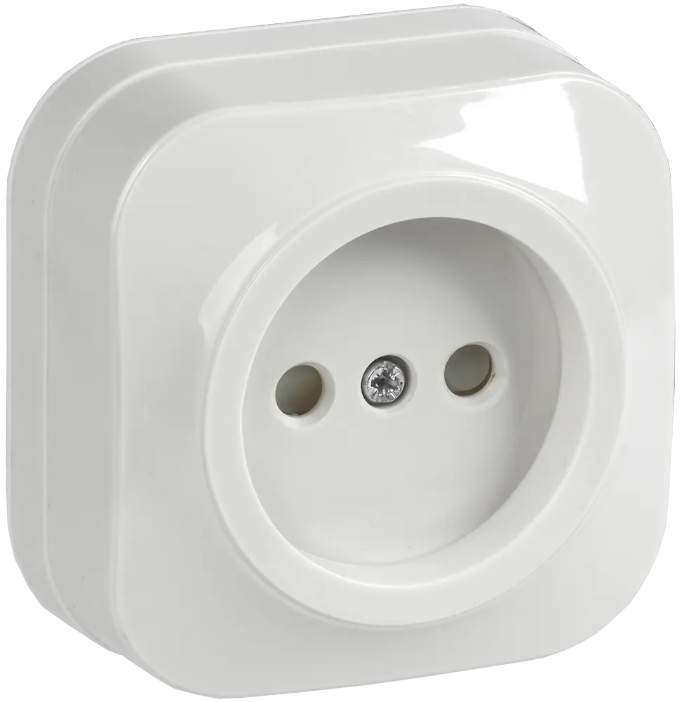 Наименование в каталоге GLORY Розетка одноместная наружная без заземления с защитной шторкой белая