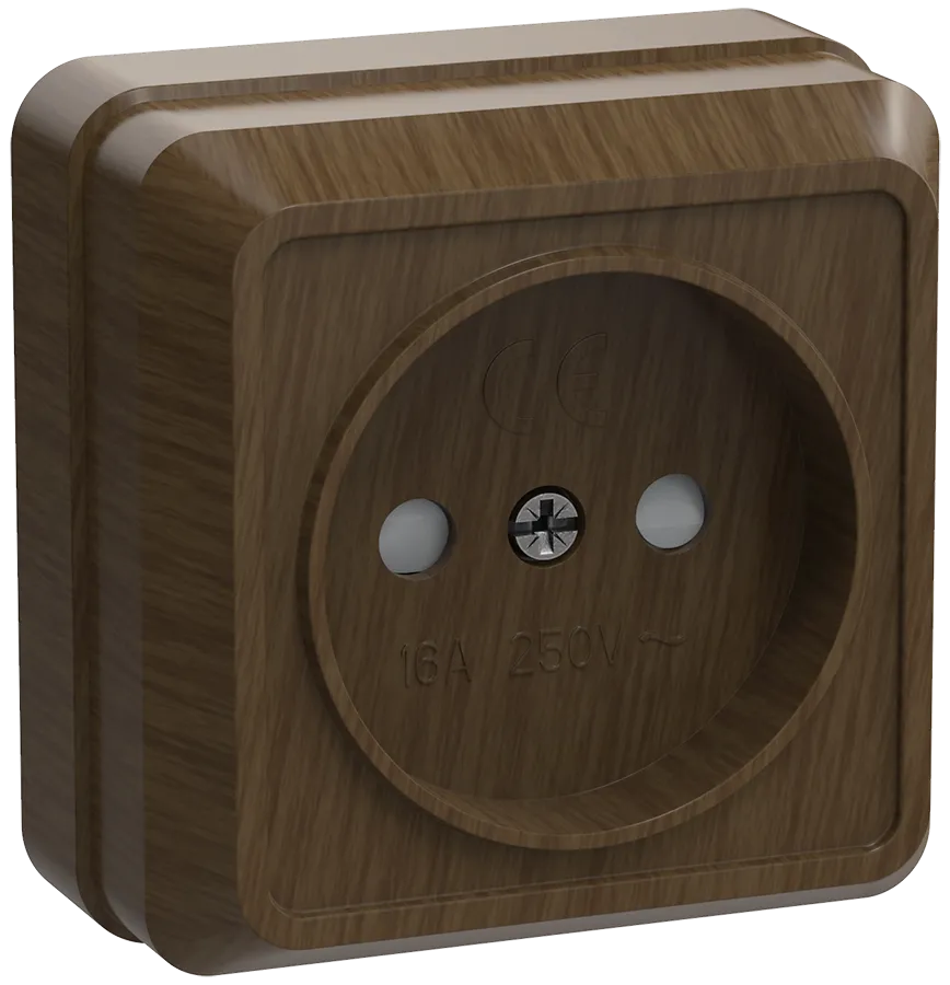 Розетка РСш20-2-ОД одноместная без заземляющего контакта с защитными шторками 10А открытая установка Октава дуб IEK (ИЭК) ERO13-K04-10-DC