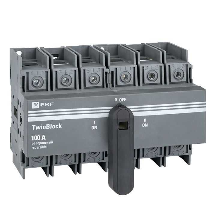 Наименование в каталоге Рубильник 100A 3P реверсивный c рукояткой для прямой установки TwinBlock