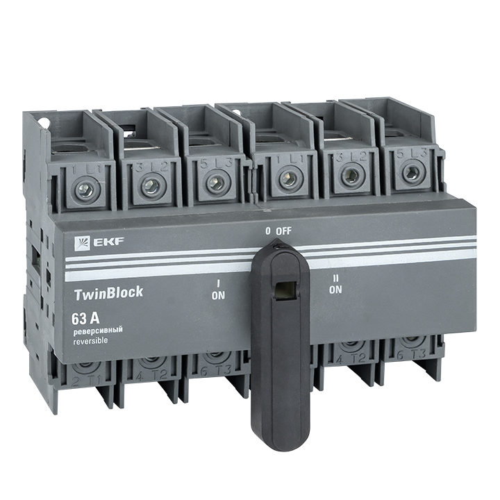 Наименование в каталоге Рубильник 63A 3P реверсивный c рукояткой для прямой установки TwinBlock