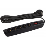 Наименование в каталоге Сетевой фильтр SFX-5es-2m-B с надежной защитой с заземлением с выключателем 5 розеток 2м 10А черный